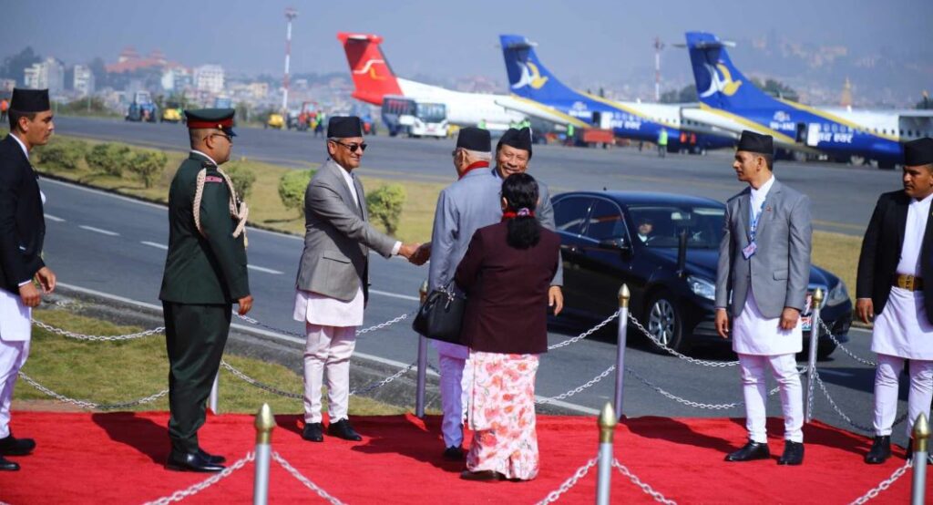 काठमाडौँ, मङ्सिर १७ गते ।नेपालका सम्मानीय प्रधानमन्त्री केपी शर्मा ओली नेतृत्वको प्रतिनिधिमण्डल चारदिने औपचारिक भ्रमणका लागि छिमेकी मुलुक चीन प्रस्थान गरेको छ । समकक्षी चीनका प्रधानमन्त्री ली छ्याङको औपचारिक निमन्त्रणामा नेपाली प्रतिनिधिमण्डलको नेतृत्व गर्दै प्रधानमन्त्री ओली नेतृत्वको टोली चीन प्रस्थान गरेको हो ।